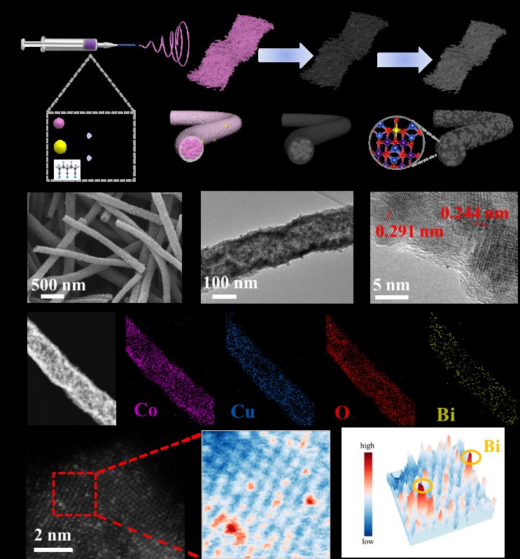 Recently, Associate Professor Li Yayun's team from the College of Materials Science and Engineering published a research paper titled "Bi1-CuCo2O4 Hollow Carbon Nanofibers Boosts NH3 Production from Electrocatalytic Nitrate Reduction" in the Nature Index journalAdvanced Functional Materials(Impact Factor: 18.5, CAS Tier 1). The first author of the paper is Lin Hexing, a 2022 master's student, with Associate Professor Li Yayun and Associate Researcher Wei Jinshan serving as co-corresponding authors. Shenzhen University is the sole completing institution.