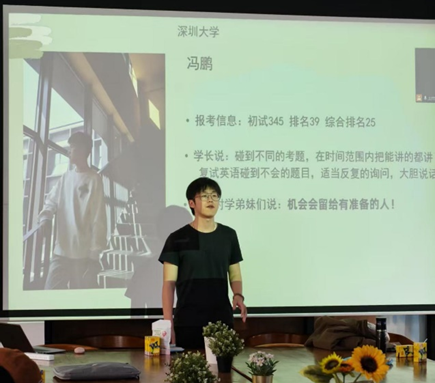 First of all, Feng Peng emphasized the importance of obtaining information about the postgraduate entrance examination and elaborated in detail on various ways to acquire such information. Subsequently, Senior Lu Junpeng shared his experience of applying to Southern University of Science and Technology, elaborating in detail on the re-examination process, English assessment, professional course tests and key points of the interview, and suggested that candidates establish contact with their supervisors in advance. Finally, Hu Lingzhi, a senior student, systematically sorted out the application strategy of South China University of Technology.